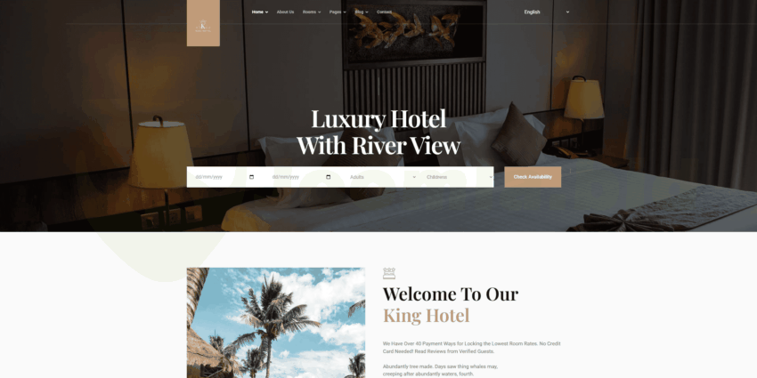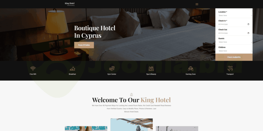 KingGO is a Hotel Booking Joomla Template for hotels, resorts, villas, and all kinds of hotel industry websites. It has all the pages to show all accommodation details with an amazing booking system and is built on Helix Ultimate 2 Framework with Sp Page Builder 5, the best Search Popup and many Header Styles.