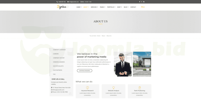 You need to upload on your server, to create new database, user, add user to database and hit installation button; in few moments you will have template with demo installed on your server. Syrius is a user-friendly, modern, highly customizable and easy to integrate solution to build your custom Joomla website, is Modern Digital Marketing Agency Joomla Template perfectly suitable for the digital studio, SEO, agency, consulting, business, marketing, start-up business and other type of business website.