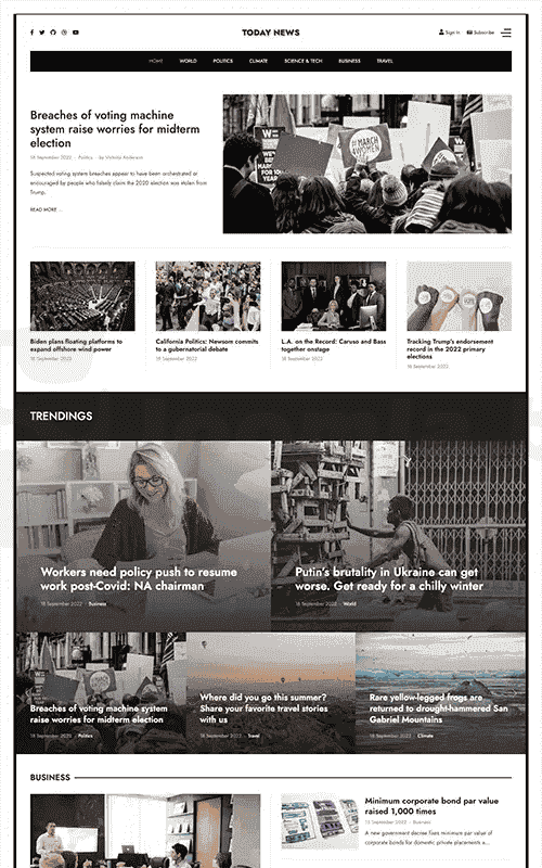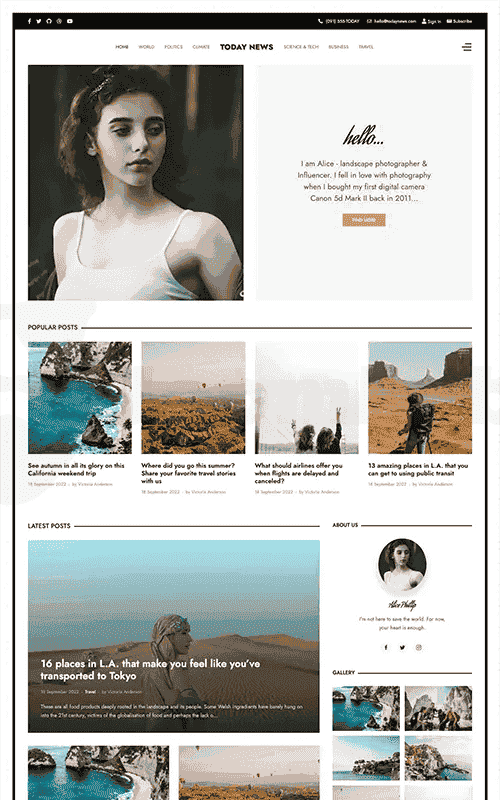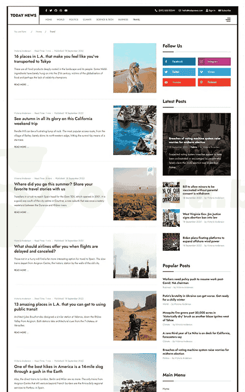 The Today News template is excellent for a personal blog, news, newspaper, newspaper, publishing or review site. It also supports videos from YouTube, Vimeo, SoundCloud system. It uses the best clean SEO practices, and on top of that, it’s fast, simple, and easy to use. Build your Joomla website without any coding skills.