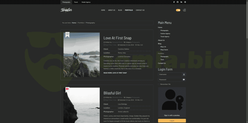 This template is perfect for every agency, designer, travel and portfolio website. The template features carefully designed templates for every web studio, branding and digital agency and lots more. It has powerful CMS functionality and a long list of premium features.