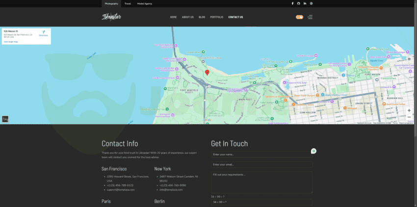 Featured Pages About Us, Portfolio, Blog, Contact Us Like a Star supports Dark and Light mode that will make your content easy for your customers to read