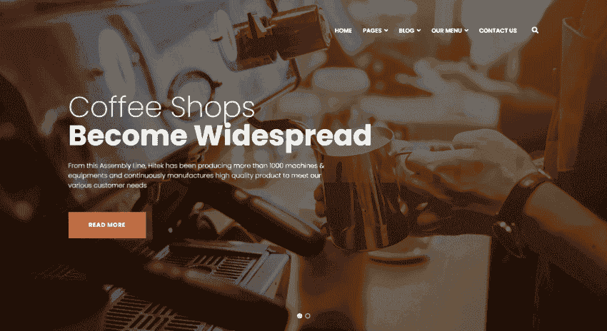 To give your coffeehouse website a profesional and premium look, Dement has a clean and modern bold design. By using the default layout of the dement demo, you’ll be able to quickly launch a new professional website for your coffeehouse.