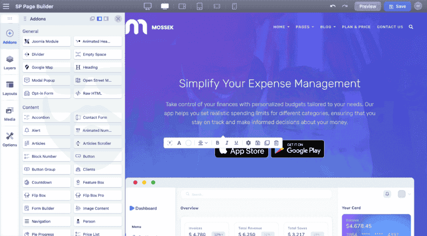- SP Page Builder Pro (Included): The SP Page Builder Pro allows you to create stunning pages and layouts with its intuitive drag-and-drop interface. No coding skills required!