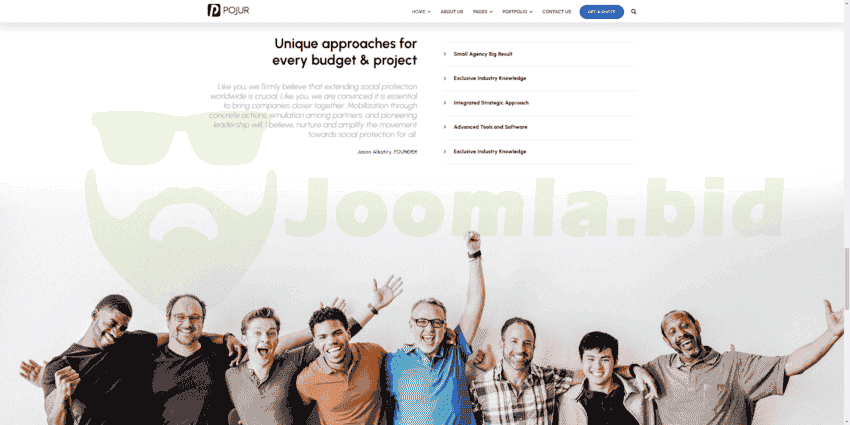 Introducing Pojur - the ultimate Joomla template for creative studios! With its drag and drop page builder, Bootstrap framework, and responsive design, Pojur makes it easy to create stunning websites that look great on any device. Plus, its multi-layout options, preset color schemes, and custom Joomla article design features allow you to easily customize your site to match your unique style and branding. And with additional features like built-in SEO optimization and a user-friendly interface, Pojur is the perfect choice for any creative studio looking to build a powerful online presence.