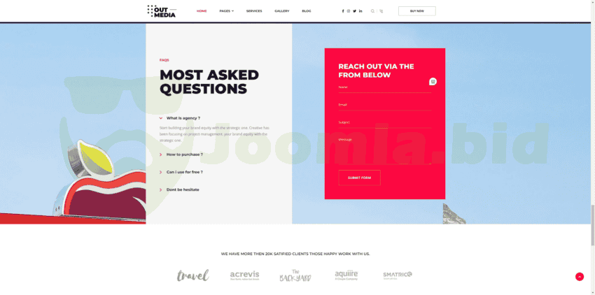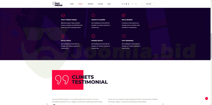 Outmedia – Outdoor & Billboard Agency Joomla 5 Template is a modern, clean and professional Joomla Template which is specially created to spread and represent your billboard advertising business to your potential customers. This template is perfectly designed and organized for any kind of Outdoor Advertising Campaigns, Media Planning, Media Buying, Billboards Advertising, Mall Advertising, Media Advertising and many more Advertising Services etc. Outmedia template is fully responsive, and it looks attractive on all types of screens and devices. It comes with a lot of user-friendly and customizable features that will help you to create a robust website to achieve the main goal of online business.