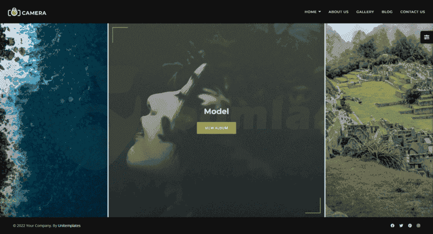 Camera brings 5 predefined colors, but you can create your own color palette. These colors magically change your website, take a look at the demo.