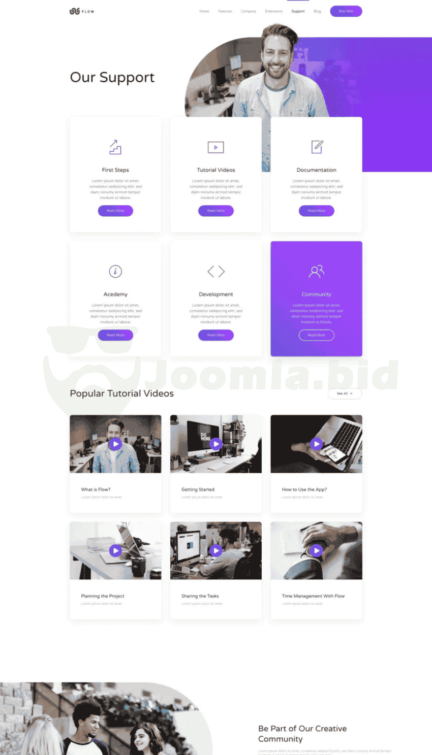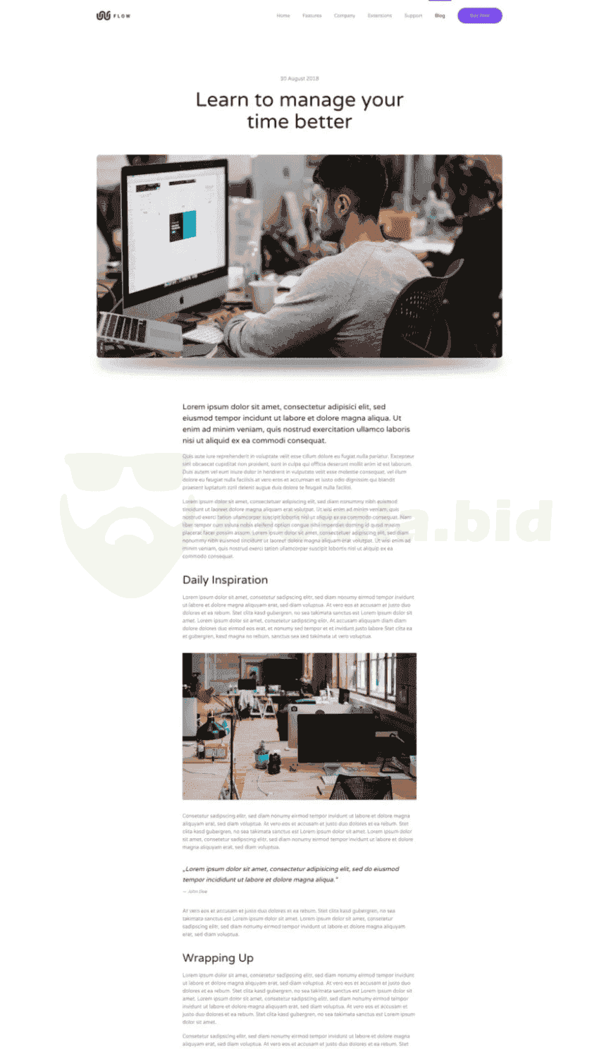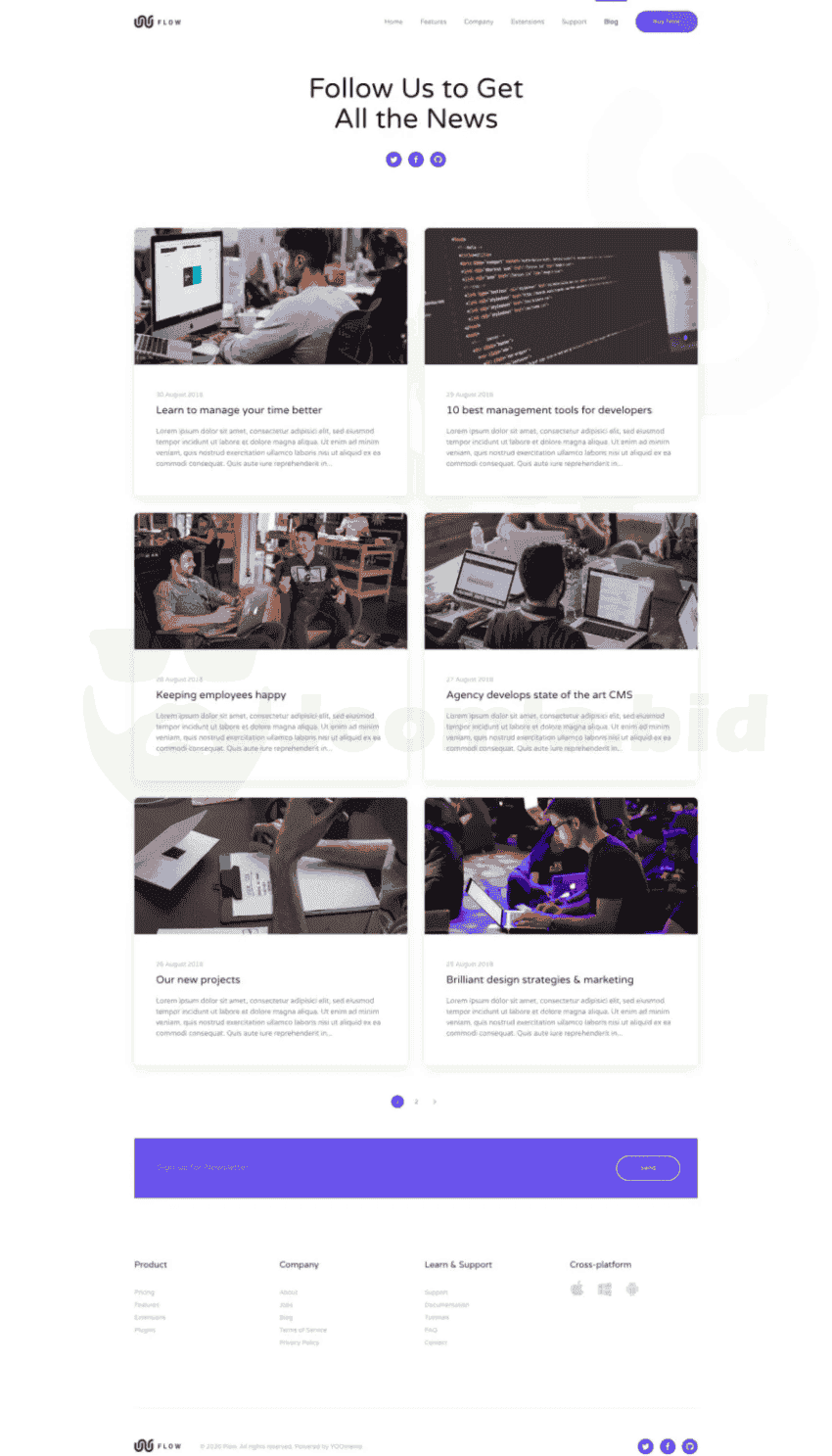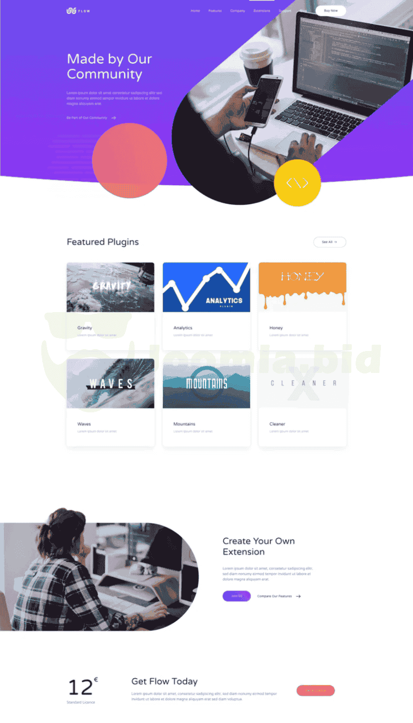 Flow is perfect for a software website where you can present your product with its features, pricing and support, other extensions as well as the company itself. It's built with the YOOtheme Pro page builder.