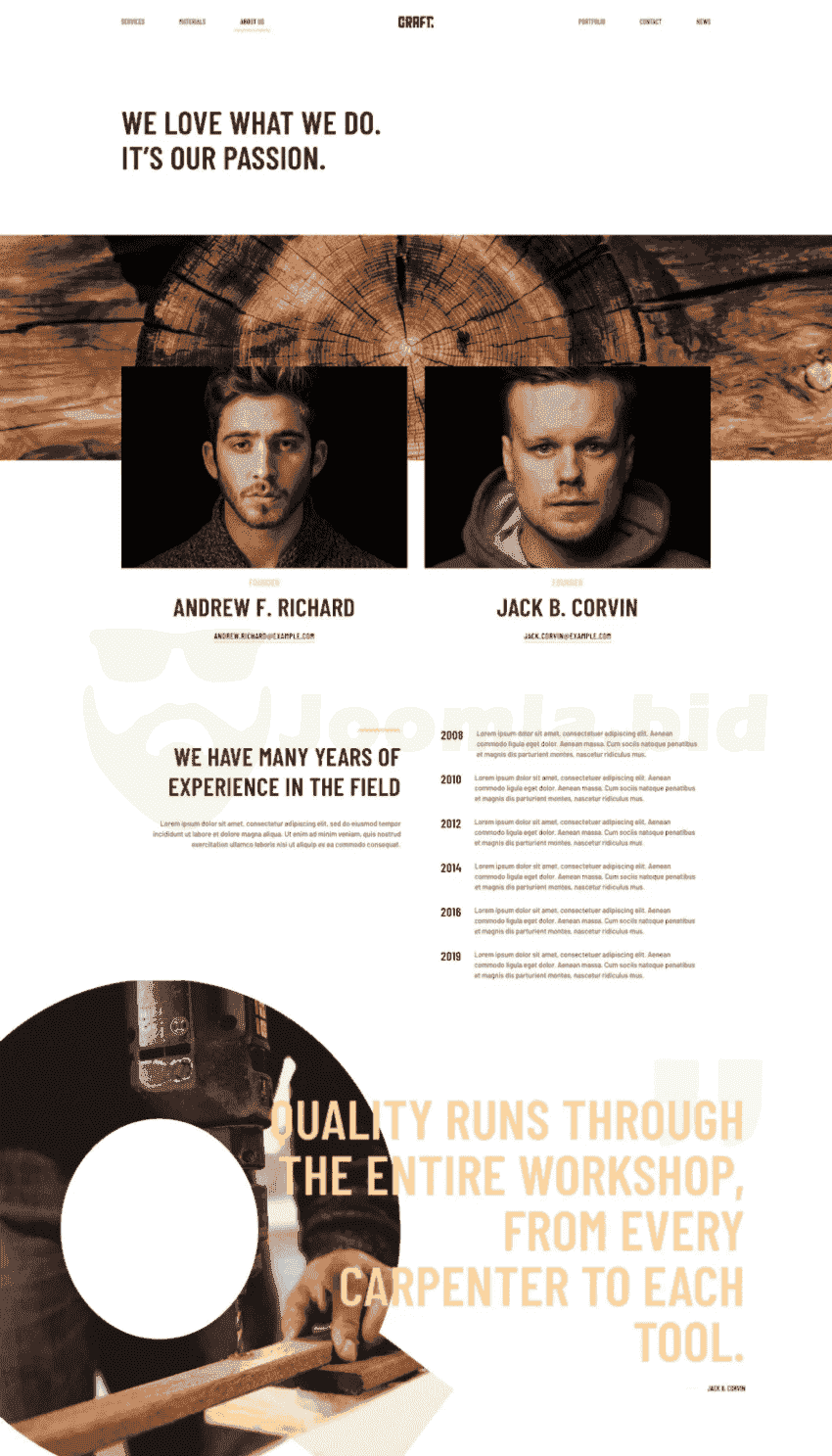 Craft is perfect for a carpenter workshop and other handcraft related websites where you can present your services, products and their materials as well as your team. It's built with the YOOtheme Pro page builder.