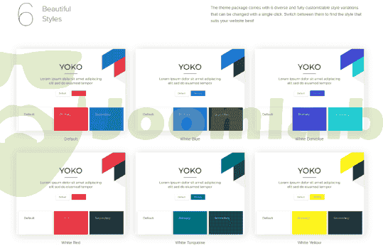 The theme package comes with 6 diverse and fully customizable style variations that can be changed with a single click. Switch between them to find the style that suits your website best!