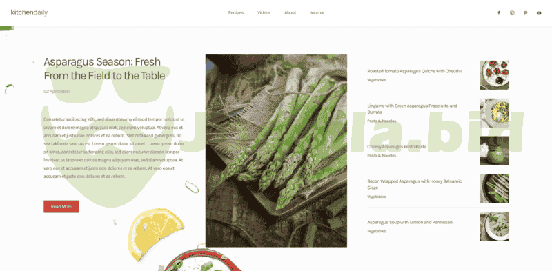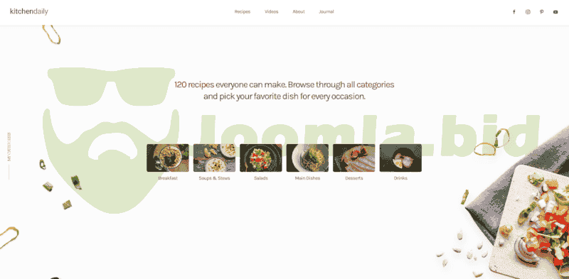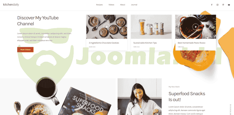 Quickstart for Joomla 5, Joomla 4 & Joomla 3 - incl (all demo images) Kitchen Daily is perfect for a cooking website where you can publish your recipes, share your cooking videos and post your daily tips and inspirations. It's built with the YOOtheme Pro page builder.