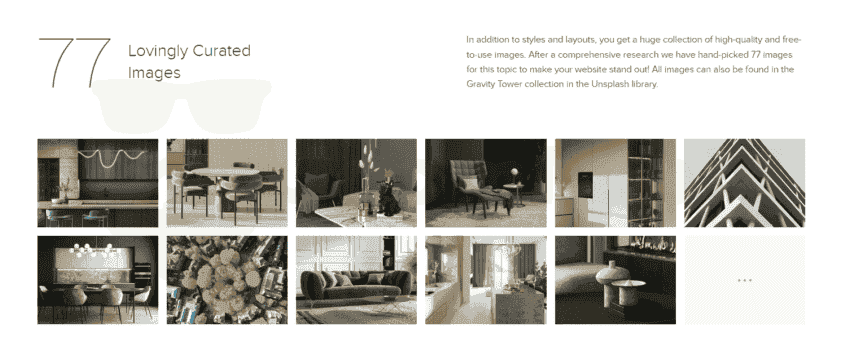 In addition to styles and layouts, you get a huge collection of high-quality and free-to-use images. After a comprehensive research we have hand-picked 77 images for this topic to make your website stand out! All images can also be found in the Gravity Tower collection in the Unsplash library.