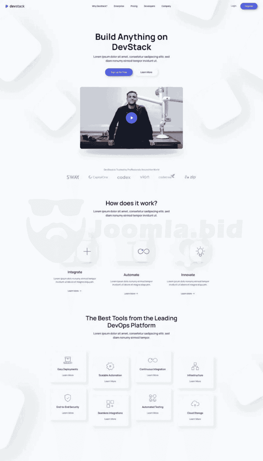 Quickstart for Joomla 5, Joomla 4 & Joomla 3 - incl (all demo images) DevStack Joomla Template For Software & Technology Websites.