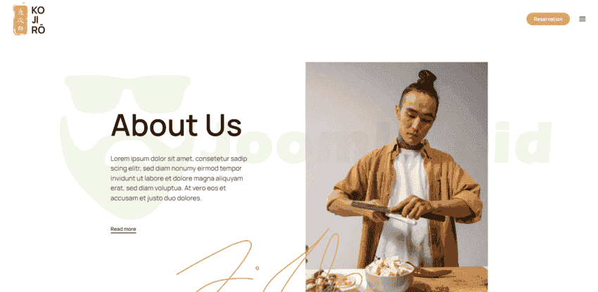 Quickstart for Joomla 5, Joomla 4 & Joomla 3 - incl (all demo images) Kojiro is perfect for a restaurant, cafe, or any other business-related websites. It's built with the YOOtheme Pro page builder.