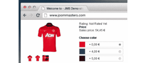JMS Colors for Virtuemart allows you to create colors for each product, each color will has own price and images. Colors and prices also will update to cart, order and invoice. JMS Custom color component manages colors, assign images of product for each color, set price add on for each color of product.