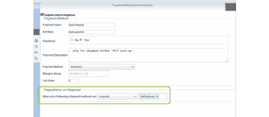 - Two variants of dependency on shipment methods - if selected / if not selected