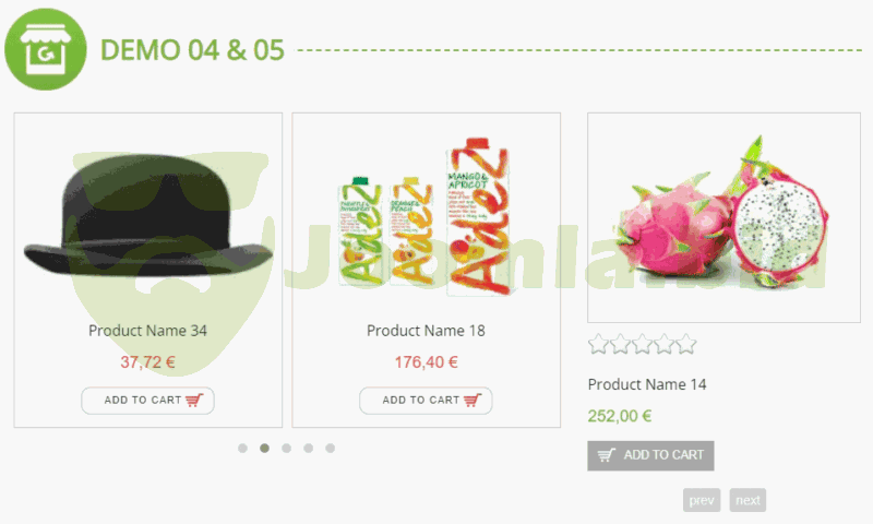 Vina Product Carousel for VirtueMart. This module will help you to show more products of VirtueMart 3.x Component in beautiful responsive carousel slider. It has options for setting the pagination/sliding speed, enabling/disabling autoplay, showing bullet navigation and more. Also, it is possible to define the number of items to be shown on desktop, tablet + mobile separately and Vina Product Carousel for VirtueMart will handle that automatically. It supports responsive design and works well on touch devices. You can use this module to show specify products from a category or some categories, you also can choose to show Featured Products, Latest Products, Random Products, Best Sales or Recent Products. You can use this module for all kind of shopping website, you will be happy with this module.