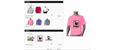 • Overlay effect for displaying the final products that could be represented as sets of layers. A good example is a t-shirt with a stamp which consist of the t-shirt and the stamp.