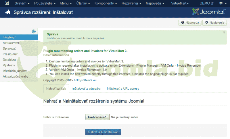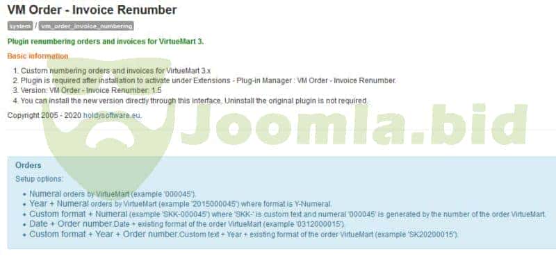 Plug-in lets you set up, for example, only a combination of purely numeric values for order and invoice generation (which can be used for payments as a variable symbol) or numeric values and custom text (if you select this option and enter the appropriate text) Year with a numeric combination of order (ID) orders, or invoices from the system VirtueMart.