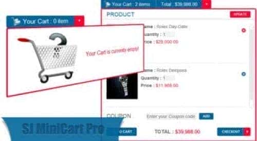 Powered by VirtueMart component, SJ MiniCart Pro is released to enable elegant checkout process. Whatever your Website is selling, this module will increase conversion rate, much more greater, by bringing your Website a mini bar with all function of an e-cart. Less steps that customers have to do when checking out, more products you sell!