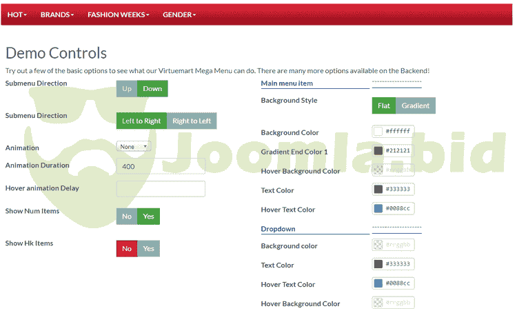 JUX Mega Menu for Virtuemart is a powerful & responsive Joomla menu module that helps you to flexibly & easily bring Virtuemart categories & subcategories to display in the menu. It is one of the mega menu extensions developed by the JoomlaUX team. With JUX Virtuemart Mega Menu, you can make Virtuemart categories and subcategories display as menu items.