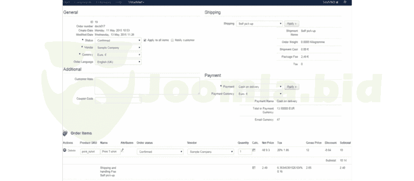 - create own VirtueMart orders / invoices using; simply create new orders through your Joomla backend e.g. when accepting orders via phone, fax, in person or other channels