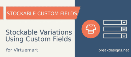 Now the creation of stockable variants in Virtuemart is easy and fast Use existing custom fields to create variations A variation can be a new child product or an existing one (for those inserting products with a bridge or csv) Can be combined with other custom plug-ins to offer more attractive results and better usability in the back-end. Easy creation and management Derived products can be searched and filtered