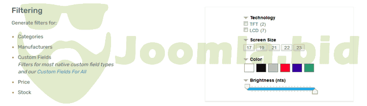 ★ Generation of filters from the Virtuemart's native custom field types (Not plugins)